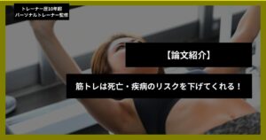 東北大学の研究によれば筋トレによって総死亡・心血管疾患・がん・糖尿病のリスクを下げることができるとされています。