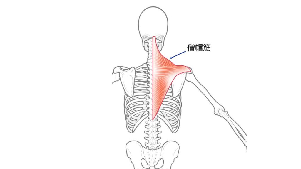 三角筋後部:肩甲骨の上から上腕骨にかけて伸び、腕を後ろに引くなどの動作で働く。